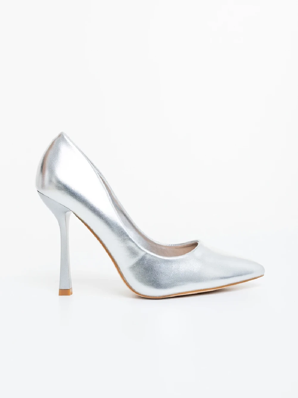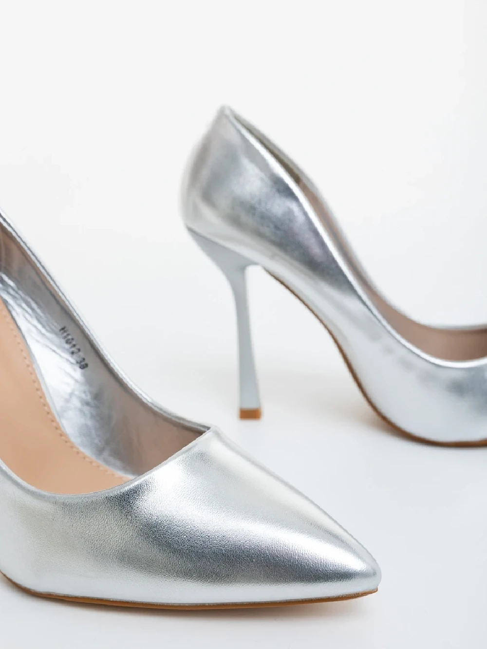 Frodina ezüstszinű női magassarkú cipő lakkozott ökológiai bőrből