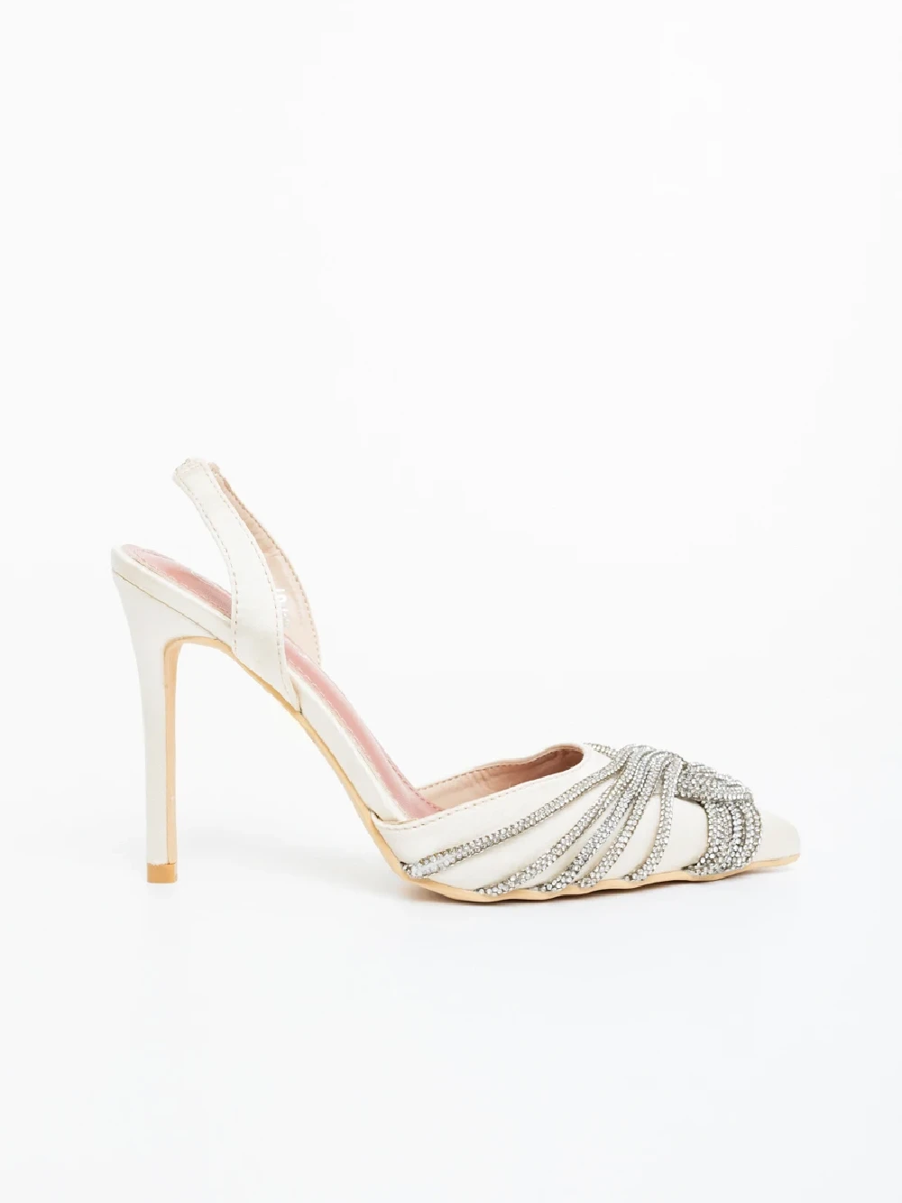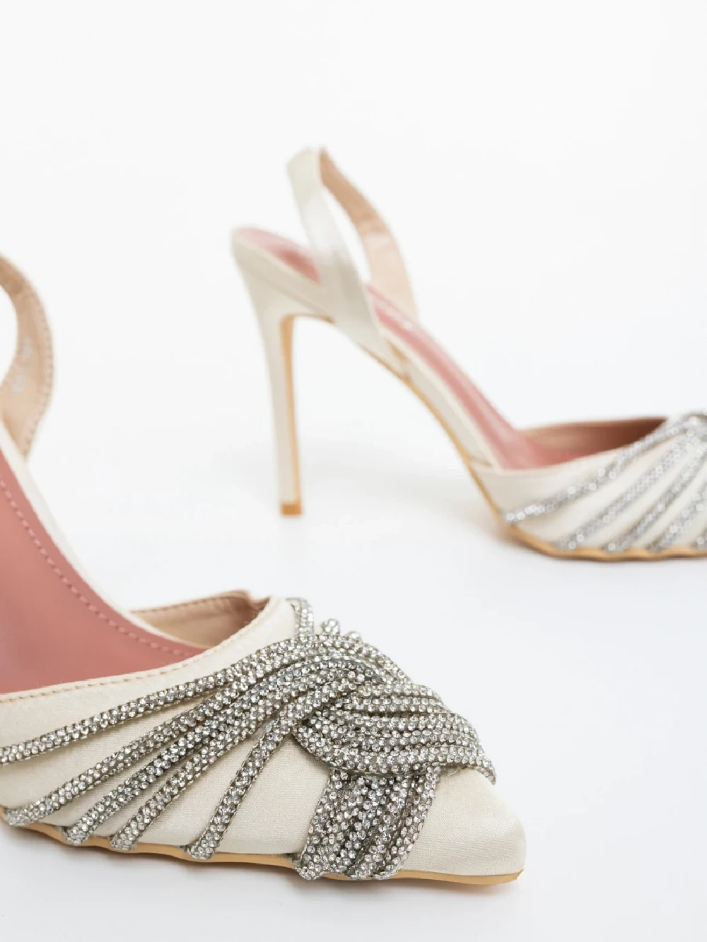 Danara bézs női magassarkú cipő textil anyagból Termék leírás