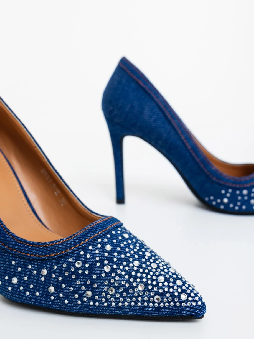 Cavila sötét kék női magassarkú cipő textil anyagból