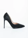 Zamera fekete női magassarkú cipő textil anyagból