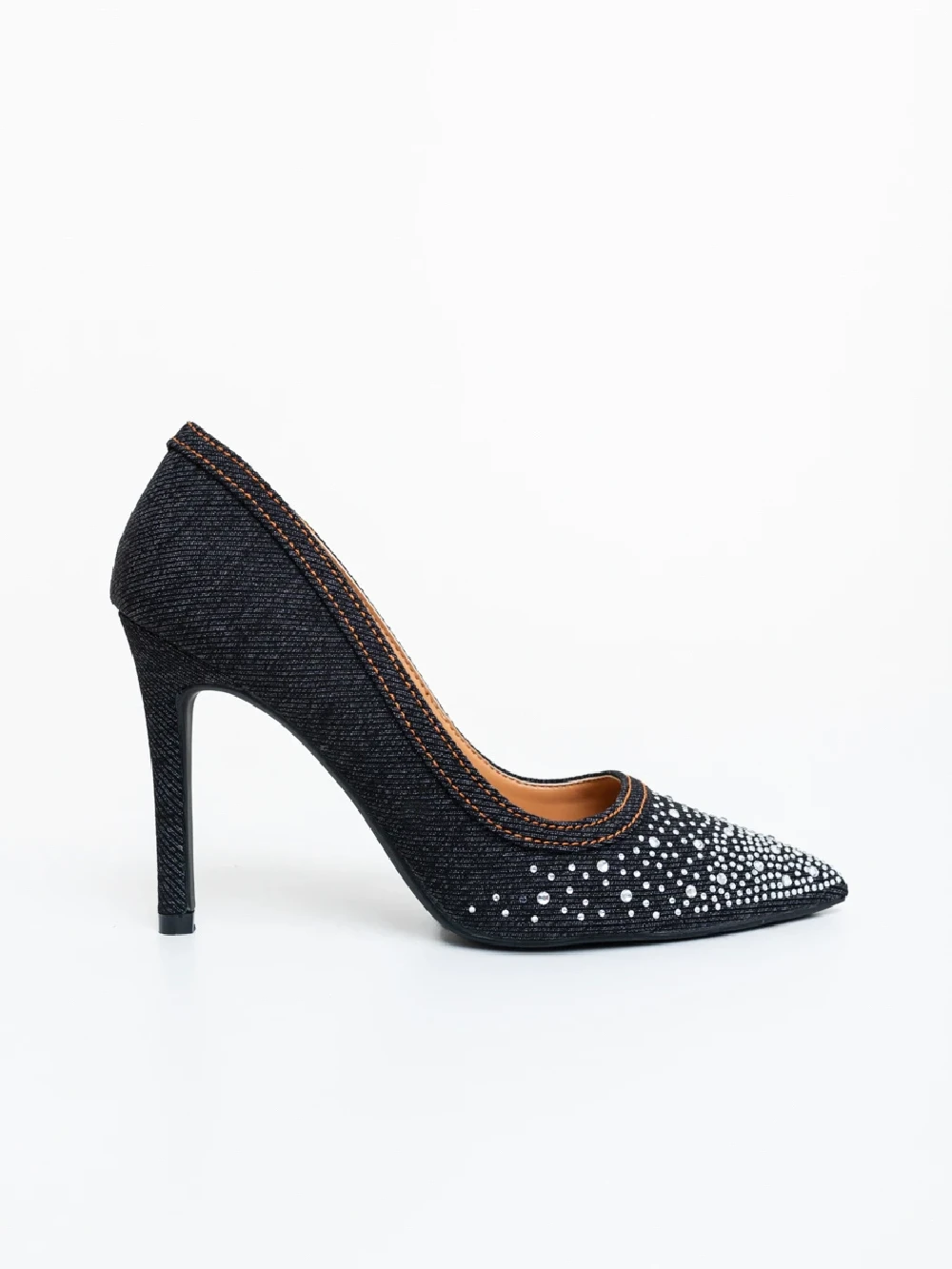 Cavila fekete női magassarkú cipő textil anyagból Termék leírás