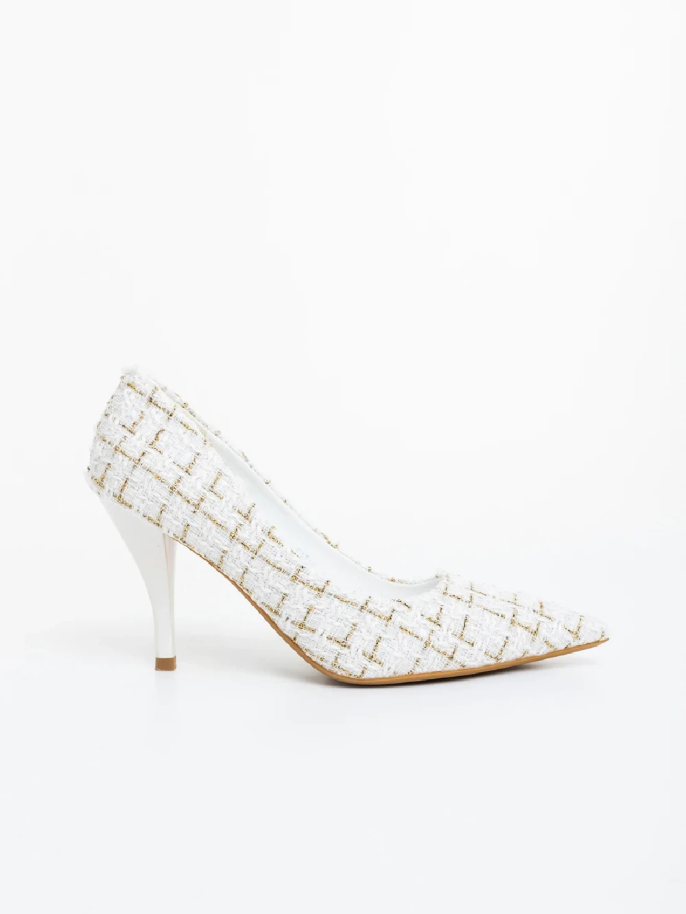 Vicara fehér női magassarkú cipő textil anyagból Termék leírás