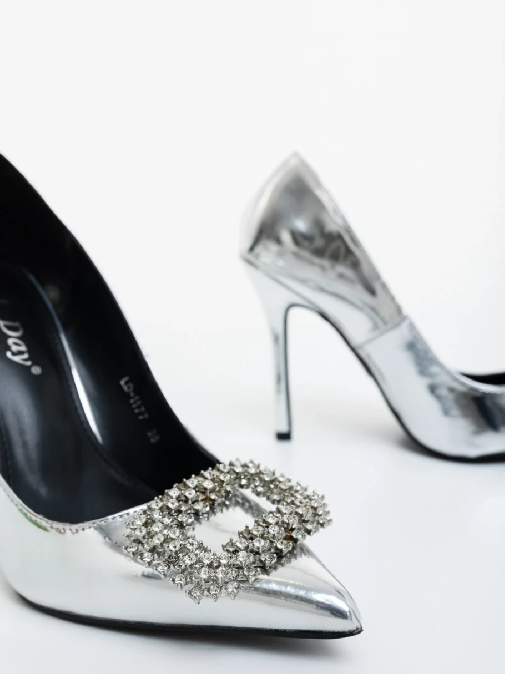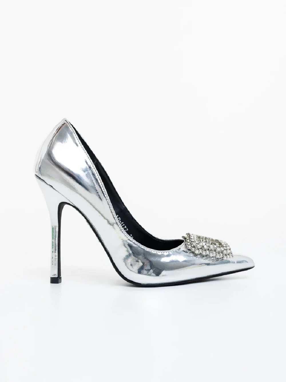 Lusera ezüstszinű női magassarkú cipő lakkozott ökológiai bőrből Termék leírás