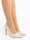 Cavila bézs női magassarkú cipő textil anyagból Termék leírás