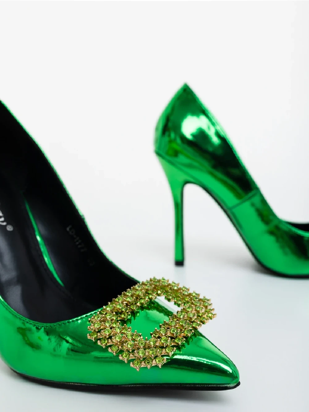 Lusera zöld női magassarkú cipő lakkozott ökológiai bőrből Termék leírás