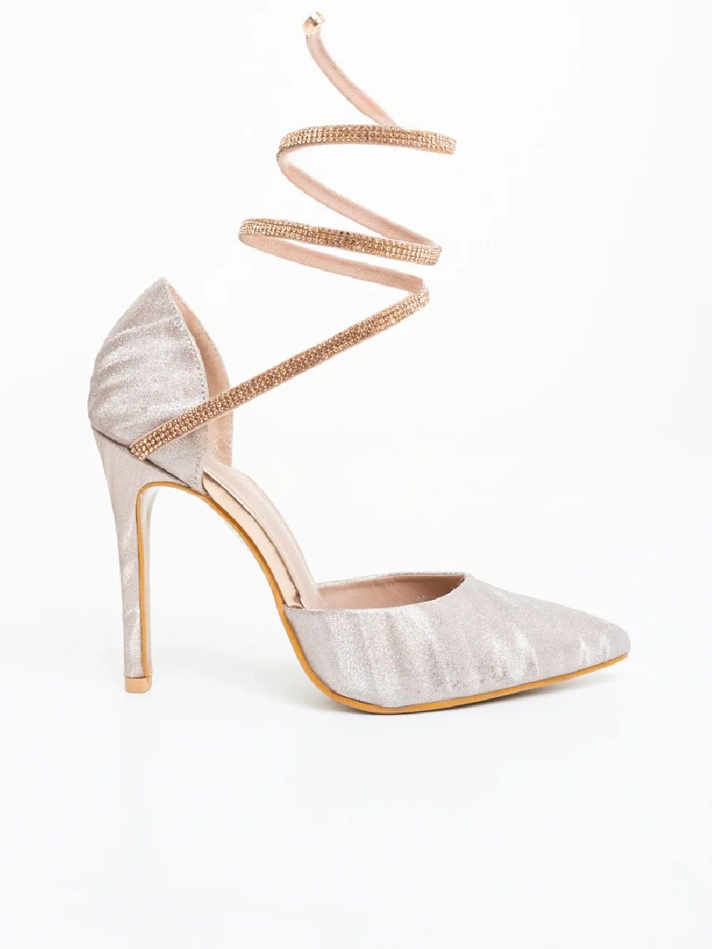 Radica pezsgőszinű női magassarkú cipő textil anyagból Termék leírás
