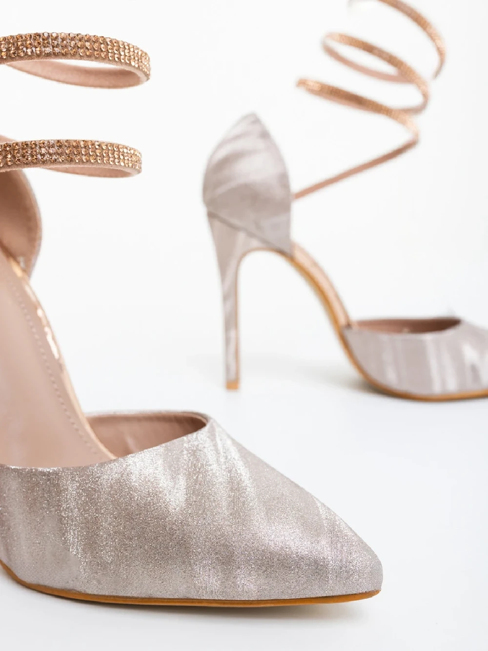 Radica pezsgőszinű női magassarkú cipő textil anyagból