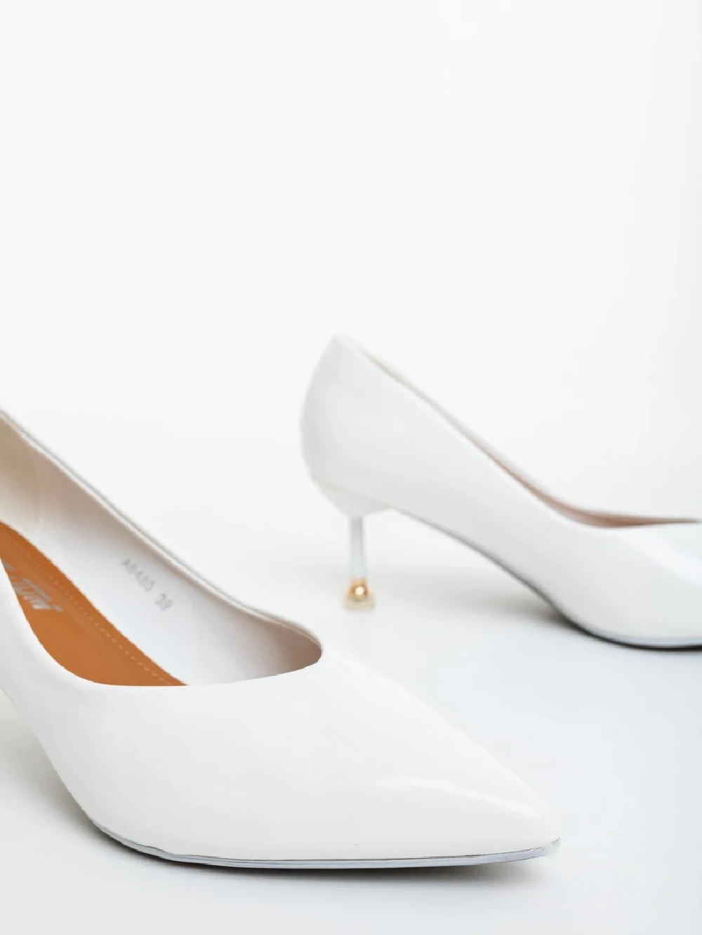 Caravela fehér női magassarkú cipő lakkozott ökológiai bőrből Termék leírás