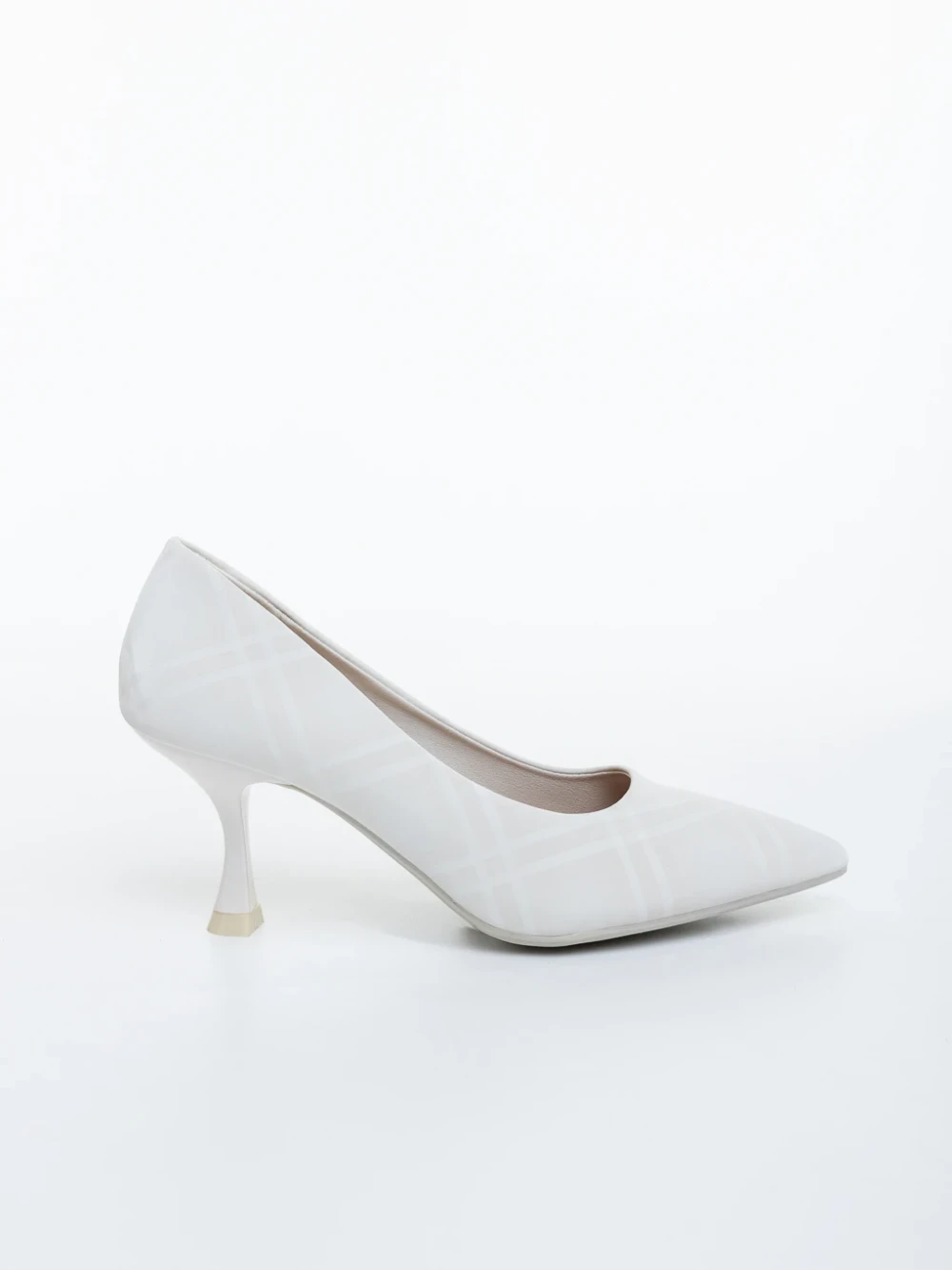 Estiana bézs női magassarkú cipő textil anyagból Termék leírás