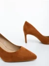 Lysana tevebarna női magassarkú cipő textil anyagból Termék leírás