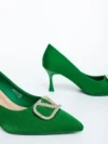 Menaka zöld női magassarkú cipő textil anyagból