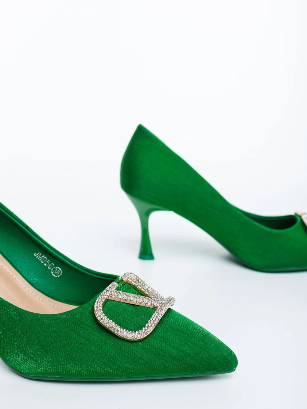 Menaka zöld női magassarkú cipő textil anyagból Termék leírás
