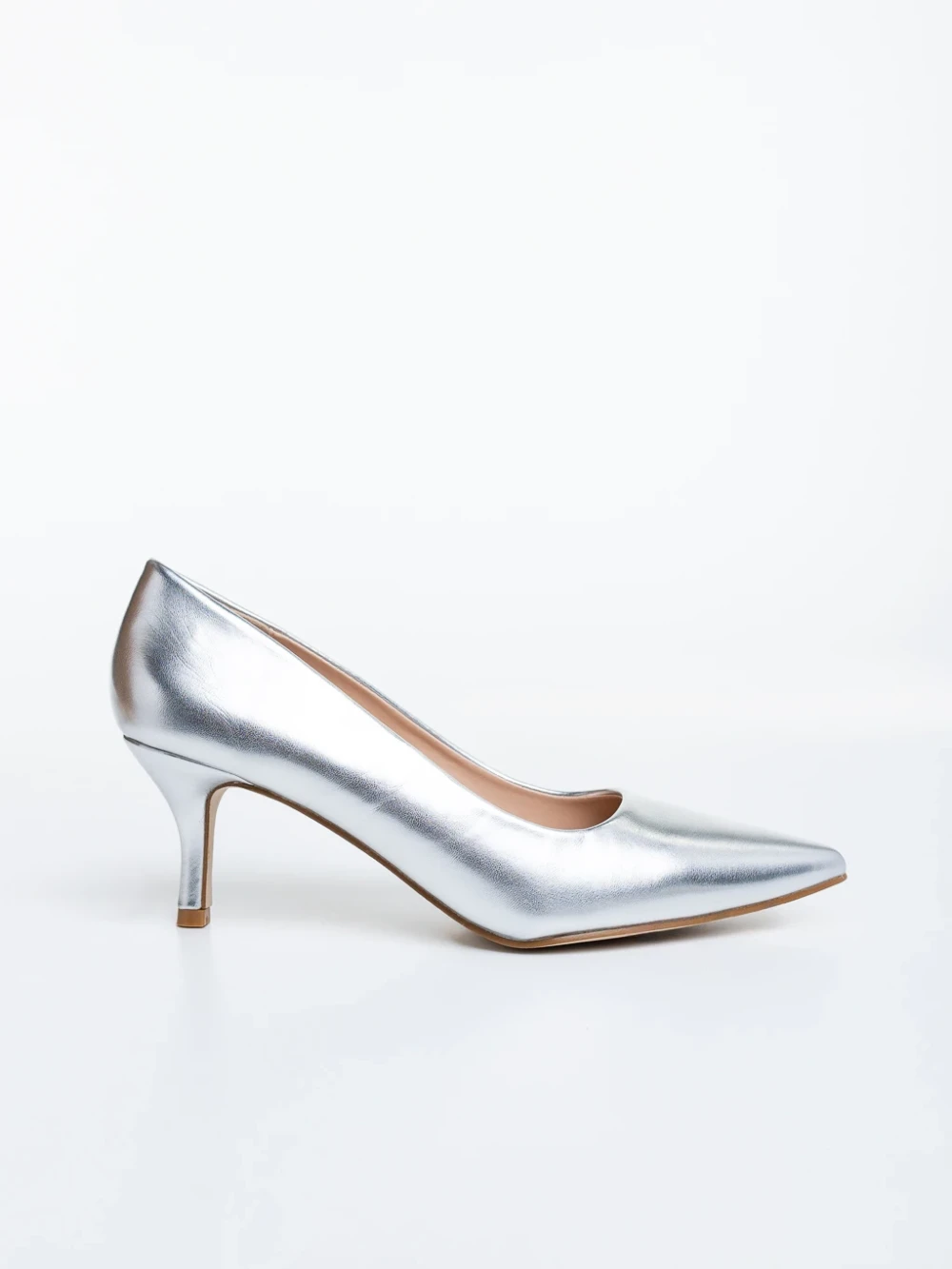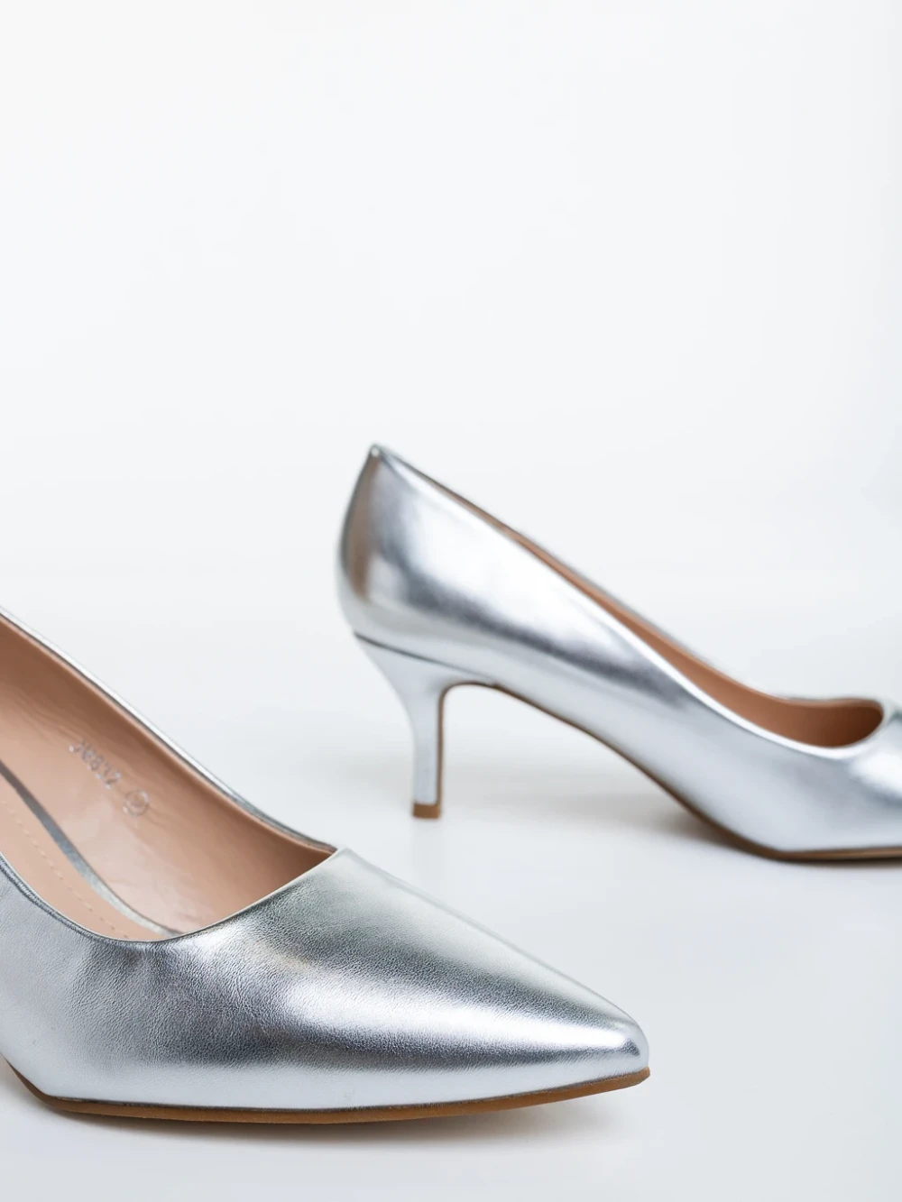 Maera ezüstszinű női magassarkú cipő ökológiai bőrből Termék leírás