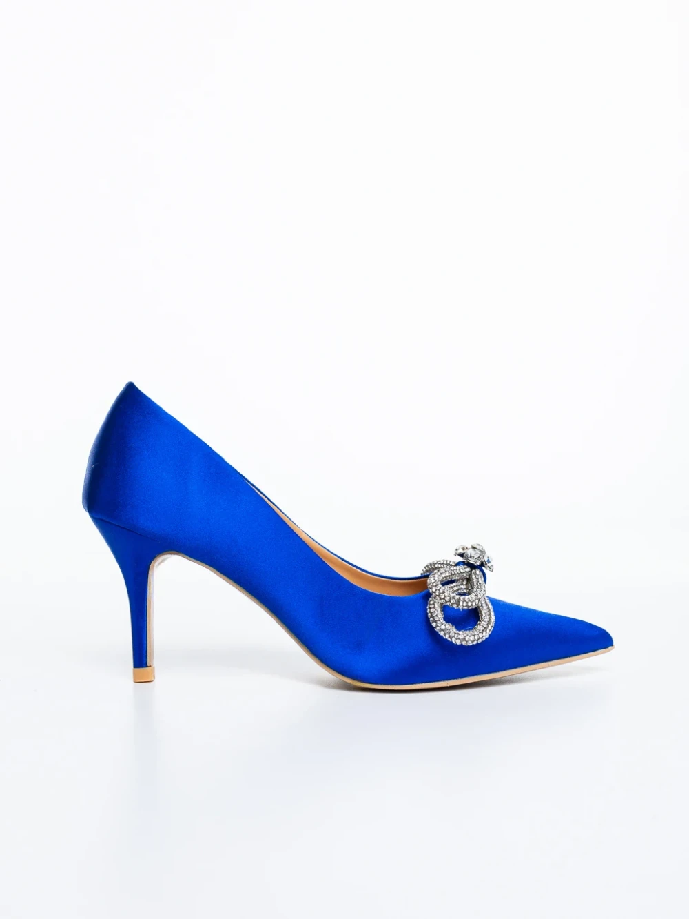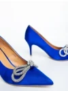 Mistera kék női magassarkú cipő textil anyagból Termék leírás