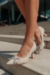 Amandi bézs női magassarkú cipő textil anyagból Termék leírás