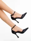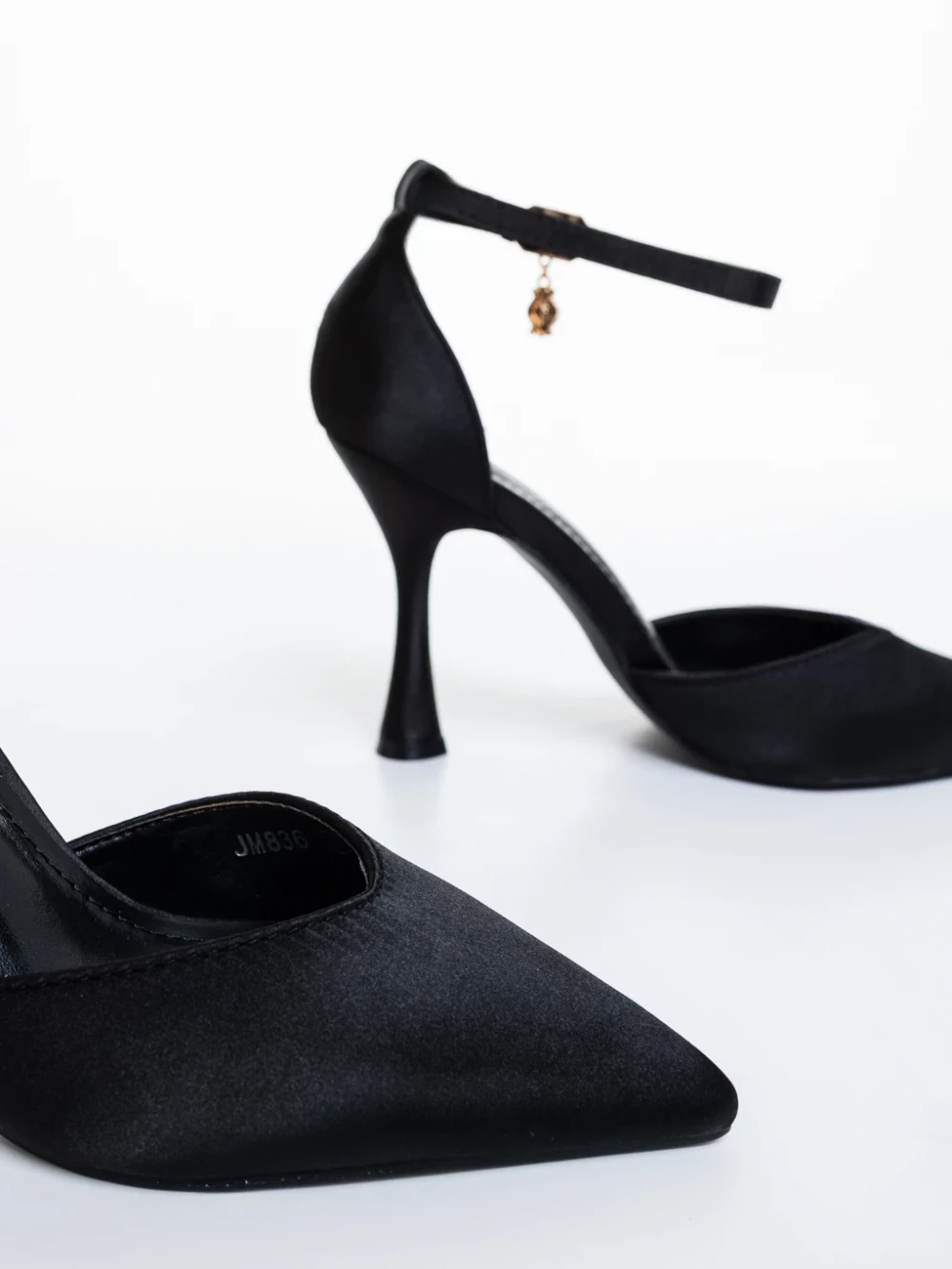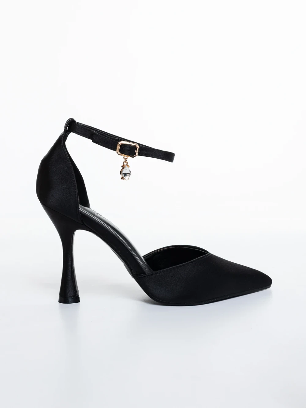 Sirada fekete női magassarkú cipő textil anyagból Termék leírás