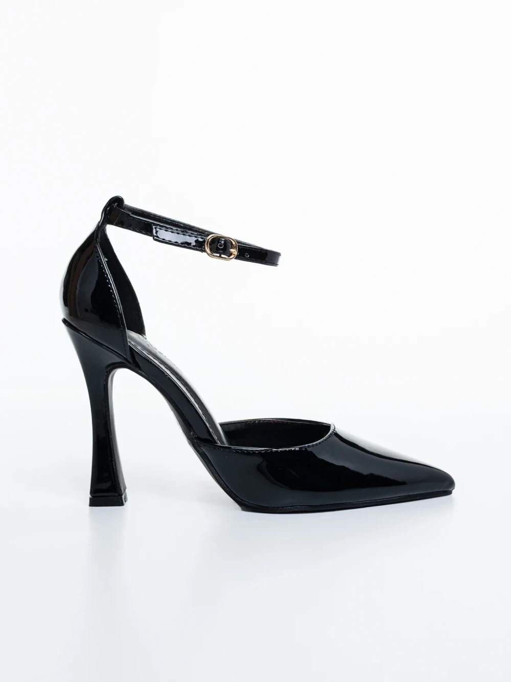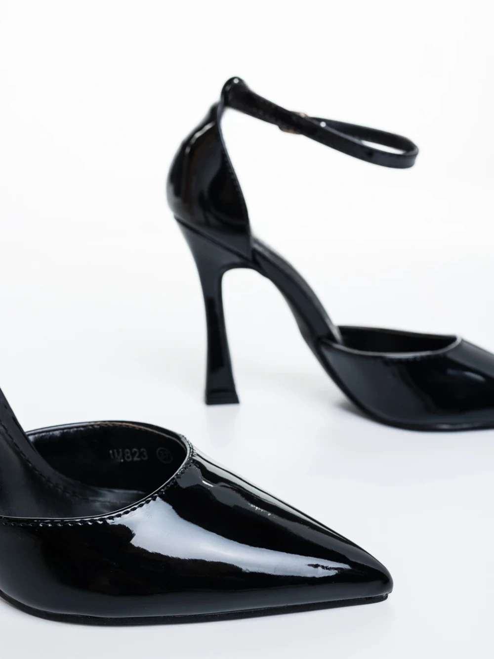 Lavrona fekete női magassarkú cipő lakkozott ökológiai bőrből Termék leírás
