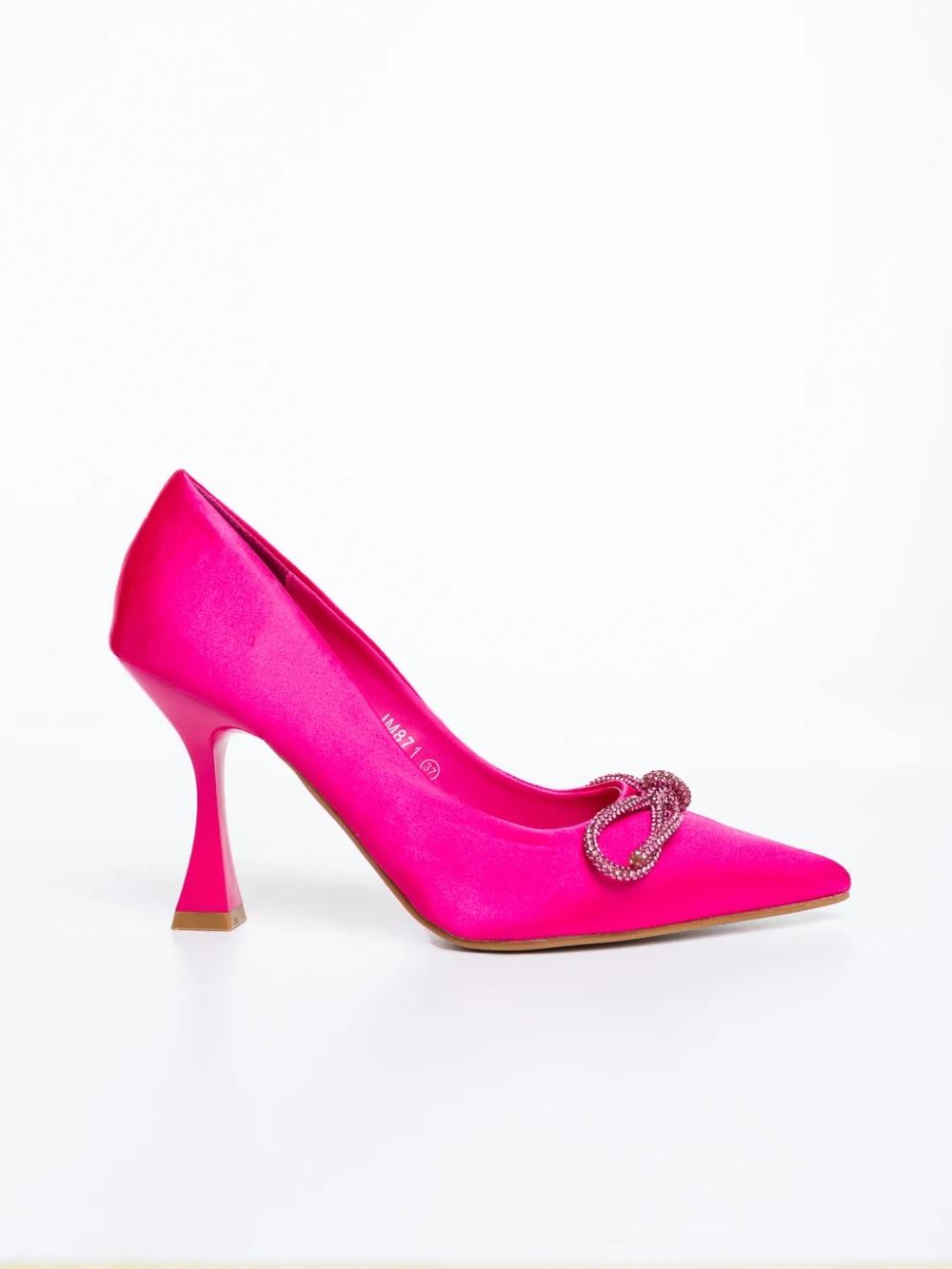 Ancona rózsaszin női magassarkú cipő textil anyagból Termék leírás