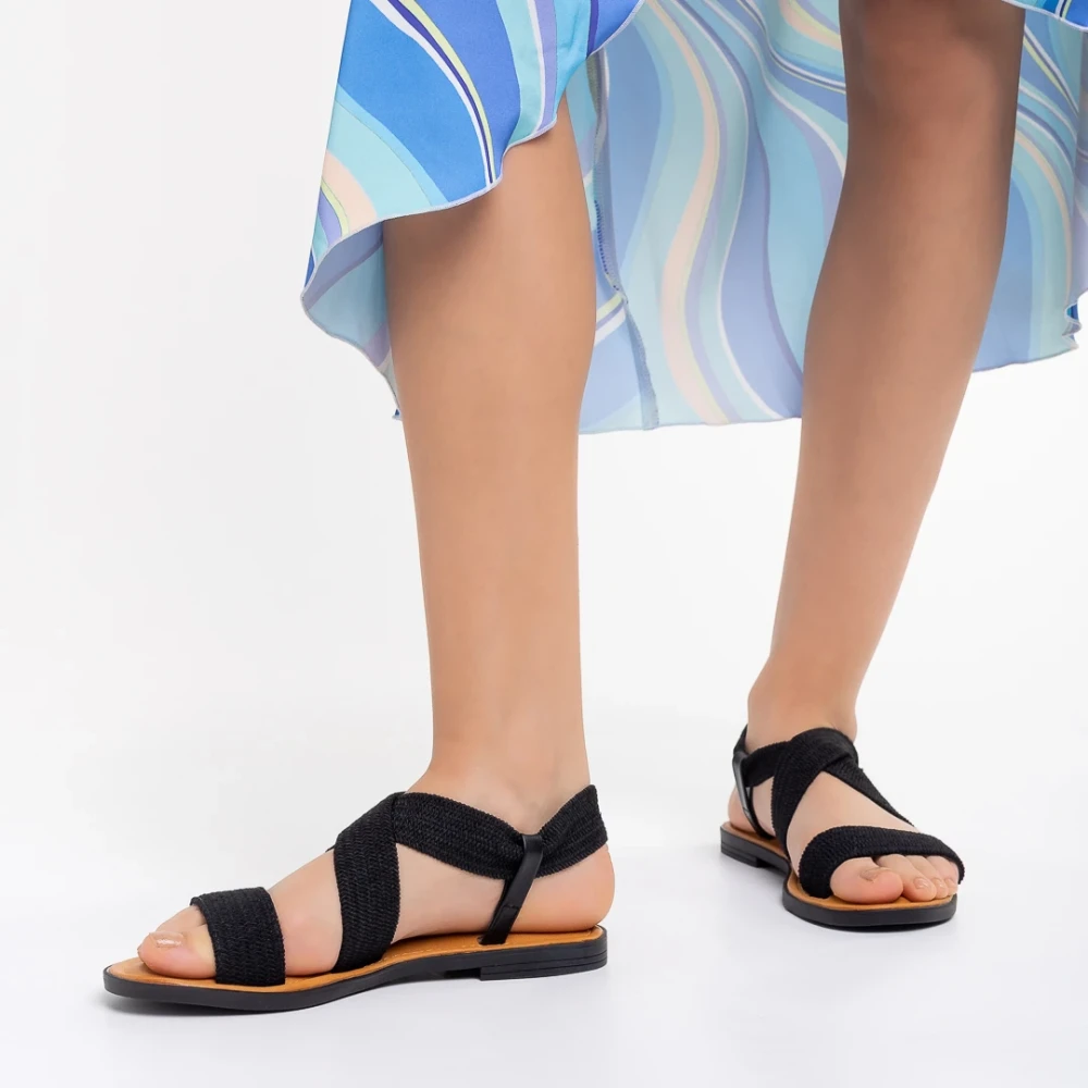 Carie fekete női szandál, textil anyagból készült