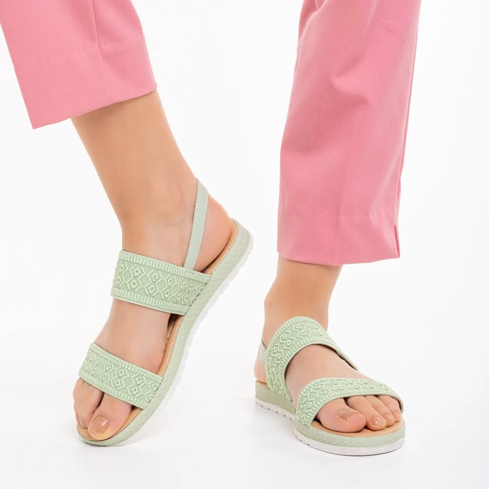 Polly zöld női szandál, textil anyagból készült