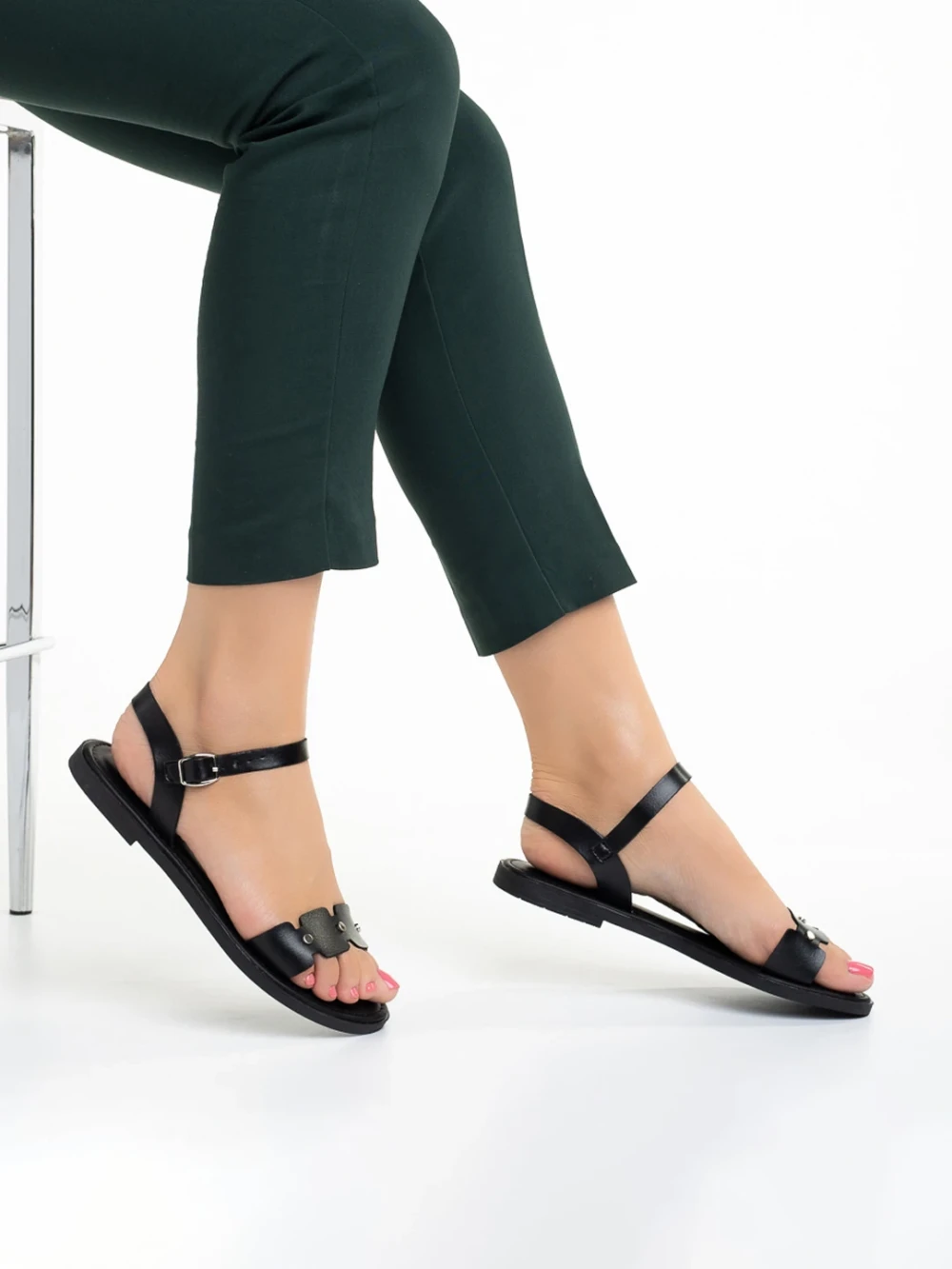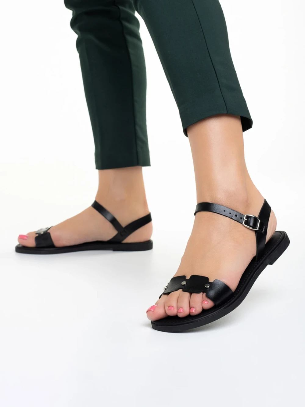 Cinzia fekete női szandál, műbőrből készült Termék leírás