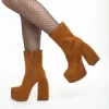 Edie camel női bokacsizma sarokkal, textil anyagból készült Termék leírás