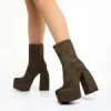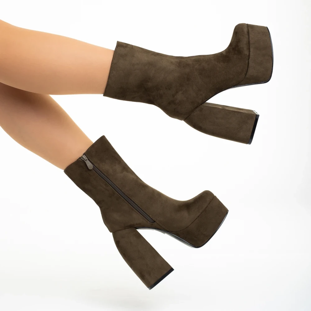 Edie zöld női bokacsizma sarokkal, textil anyagból készült