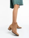 Zarina sötét bézs, női bokacsizma textil anyagból