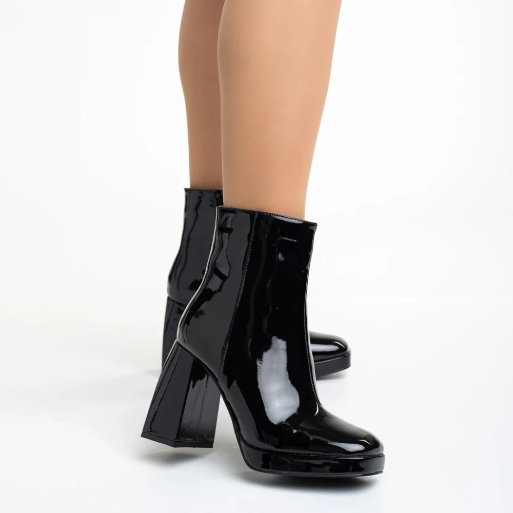 Rosalita fekete női bokacsizma, lakkozott műbőrből készült Termék leírás