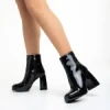 Rosalita fekete női bokacsizma, lakkozott műbőrből készült