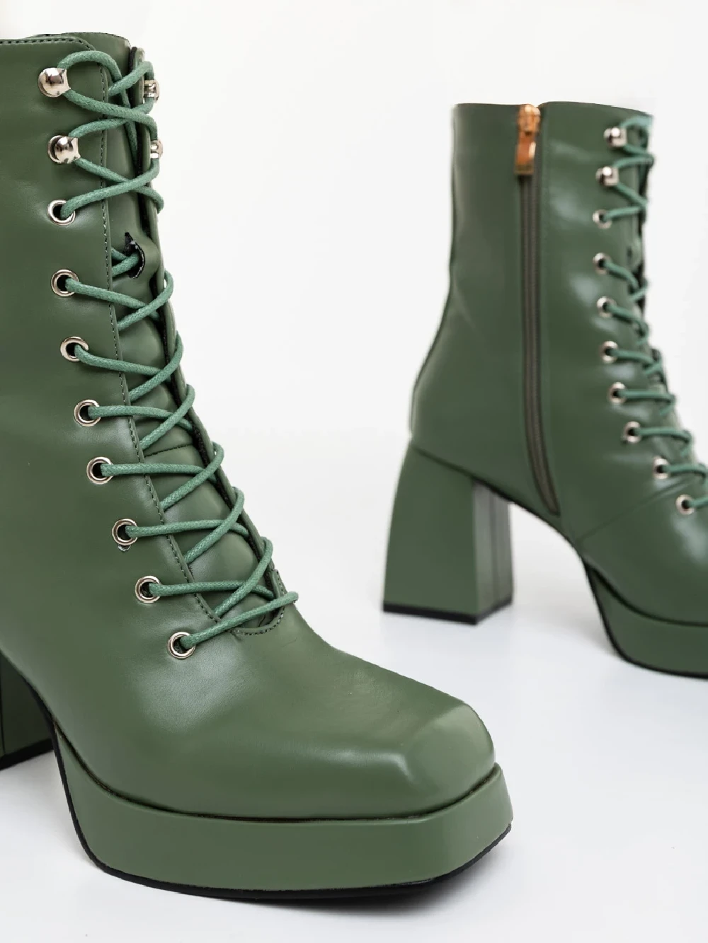 Wilfreda zöld női magassarkú bokacsizma ökológiai bőrből Termék leírás