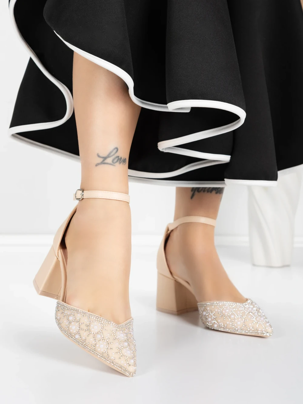 Pantofi cu Toc Gros 5XKK36 BEIGE | MEI