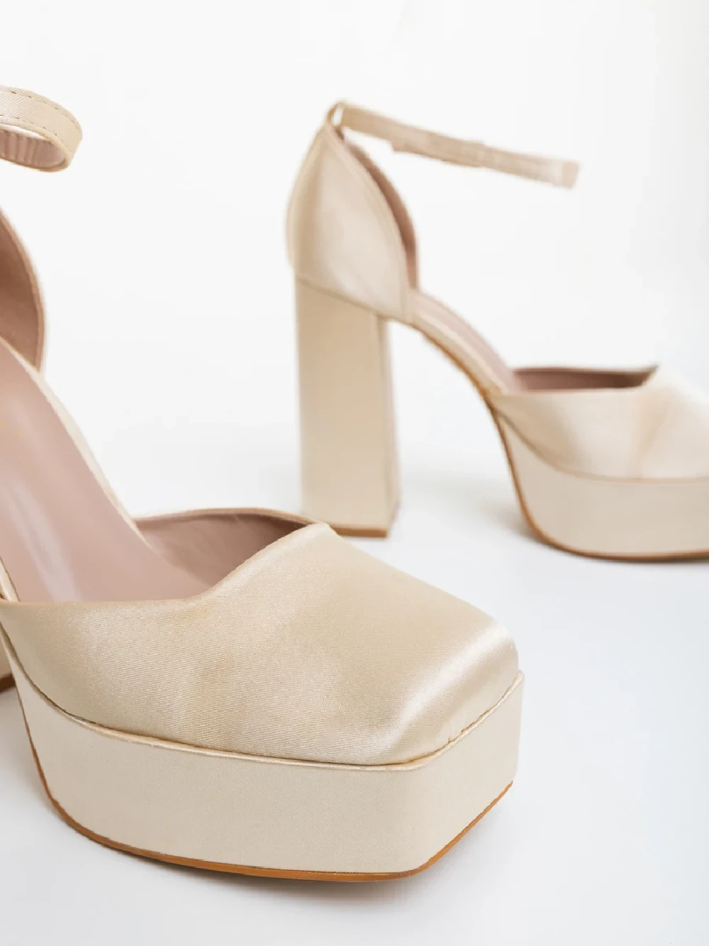 Brilia bézs női magassarkú cipő textil anyagból Termék leírás