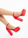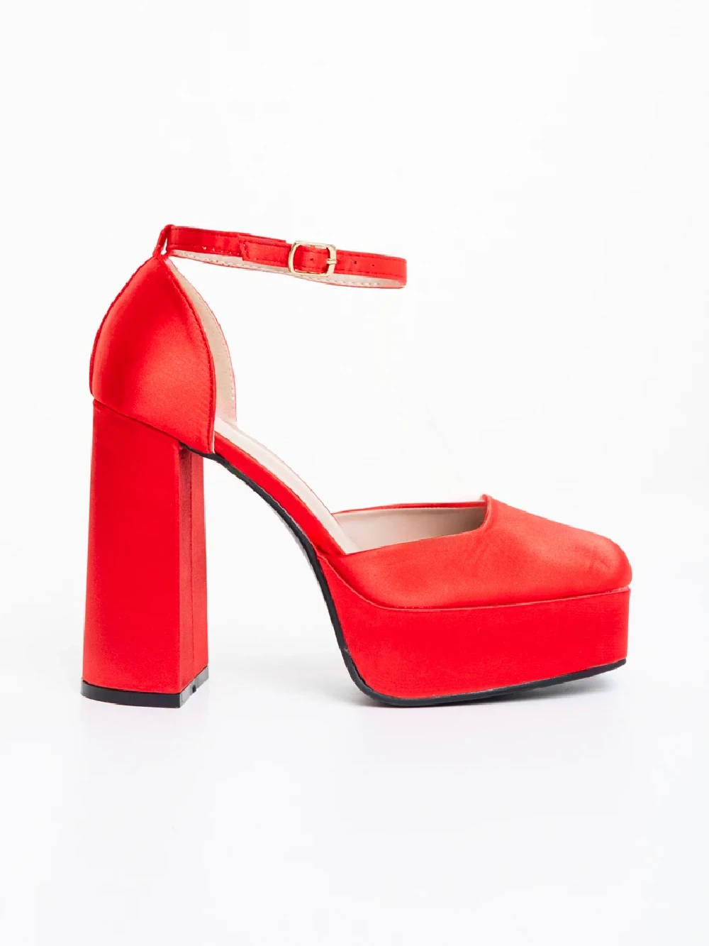 Brilia piros női magassarkú cipő textil anyagból Termék leírás