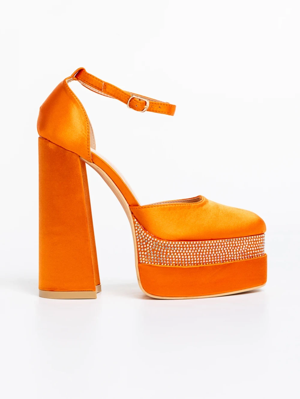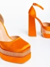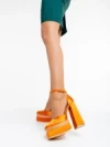 Darya narancssárga női magassarkú cipő textil anyagból