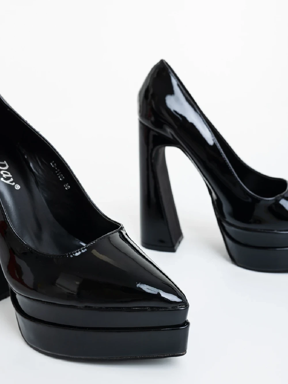 Dazani fekete női magassarkú cipő lakkozott ökológiai bőrből Termék leírás