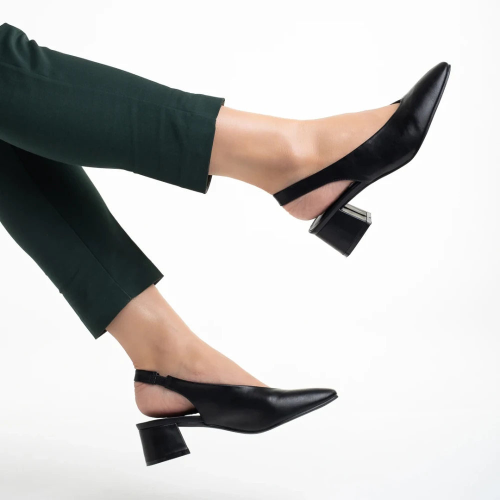 Zelda fekete női cipő sarokkal, műbőrből készült Termék leírás