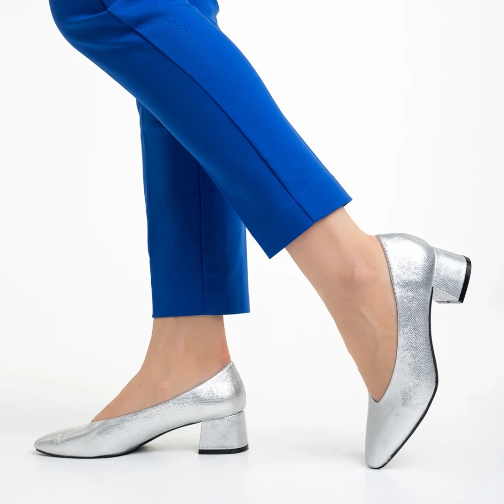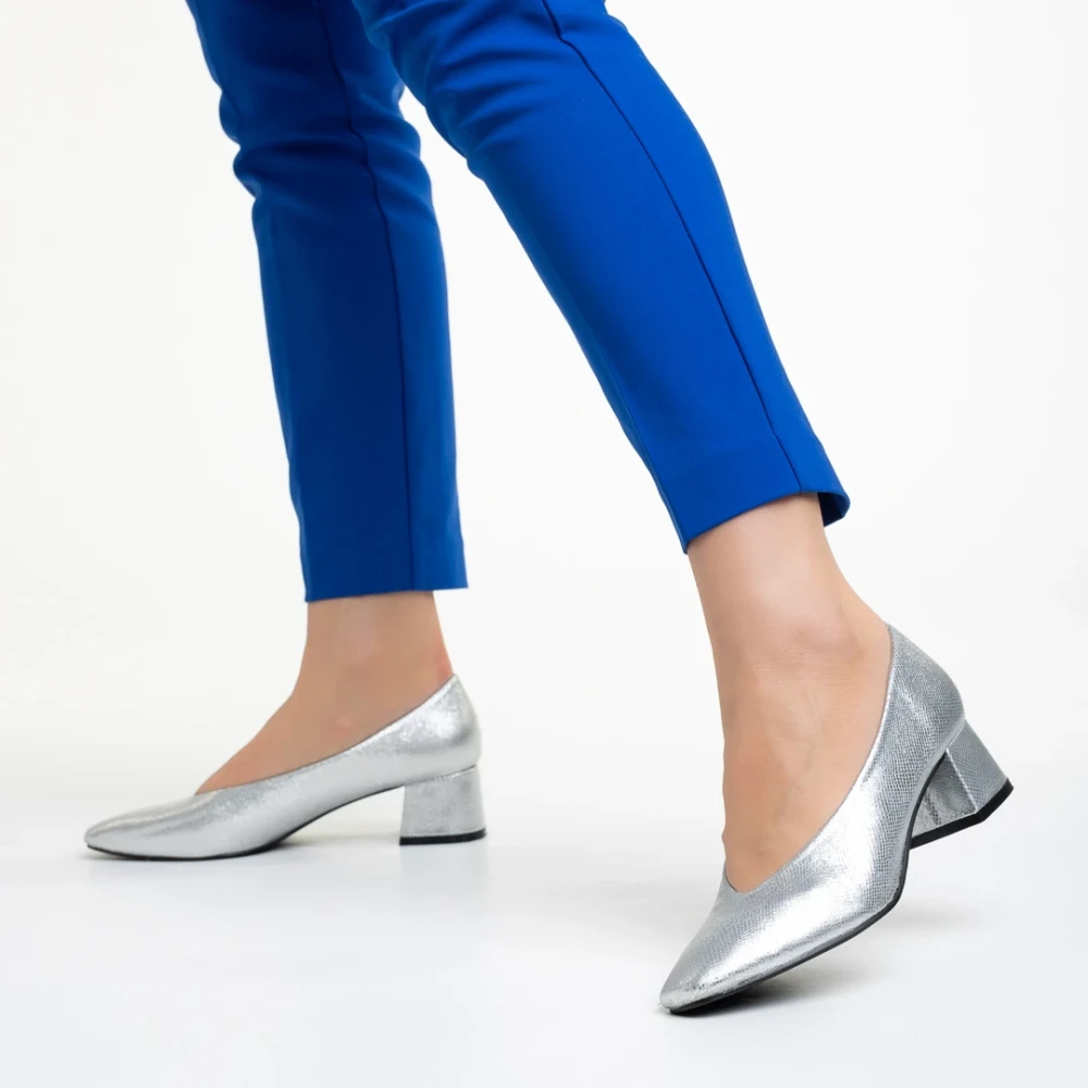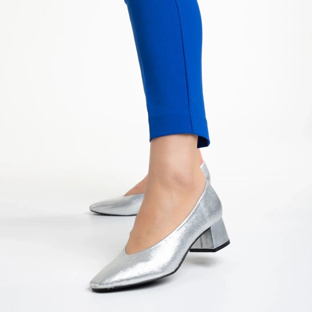 Veda ezüst női cipő sarokkal, műbőrből készült