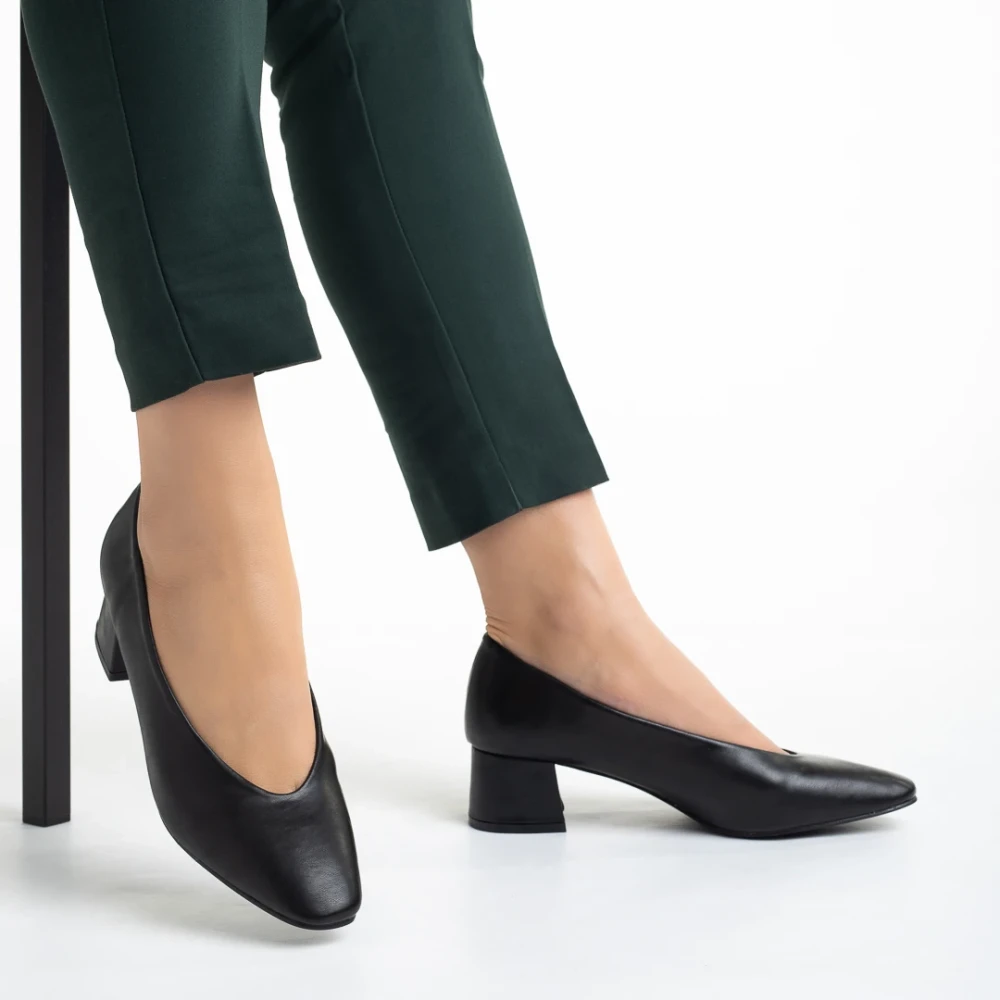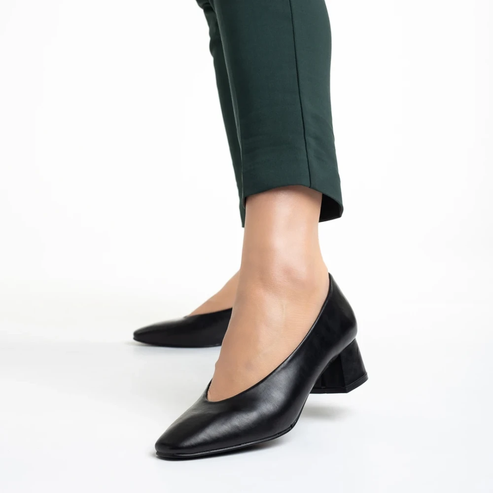 Veda fekete női cipő sarokkal, műbőrből készült Termék leírás