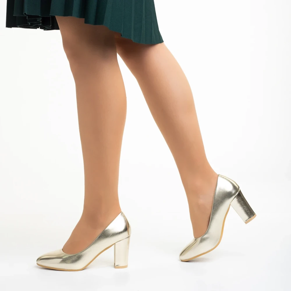 Crenta arany női cipő sarokkal, műbőrből készült Termék leírás