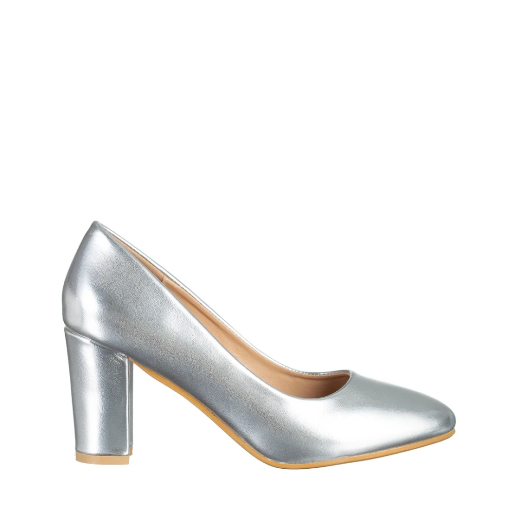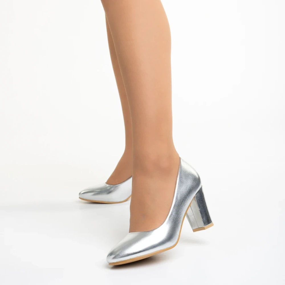 Crenta ezüst női cipő sarokkal, műbőrből készült