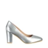 Crenta ezüst női cipő sarokkal, műbőrből készült Termék leírás