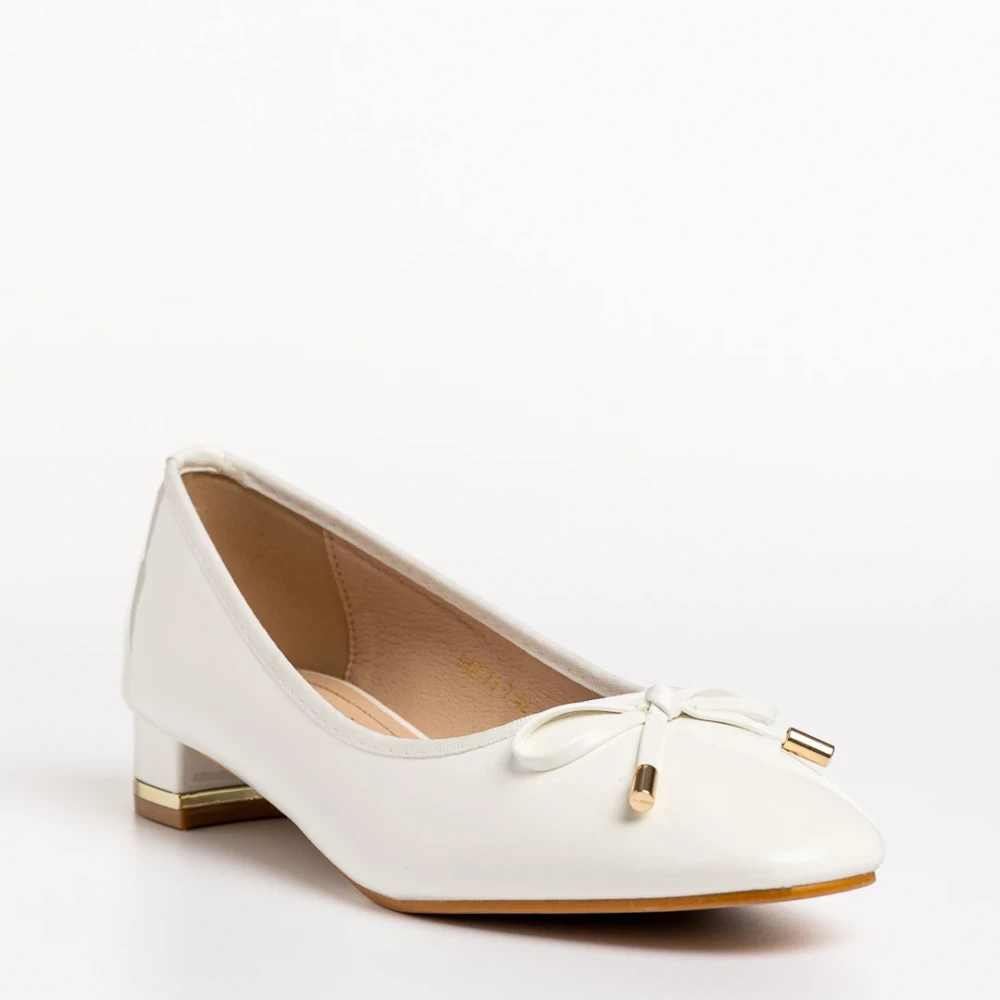 Braidy fehér női cipő, lakkozott műbőrből készült
