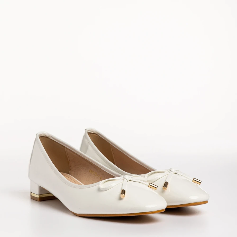 Braidy fehér női cipő, lakkozott műbőrből készült Termék leírás