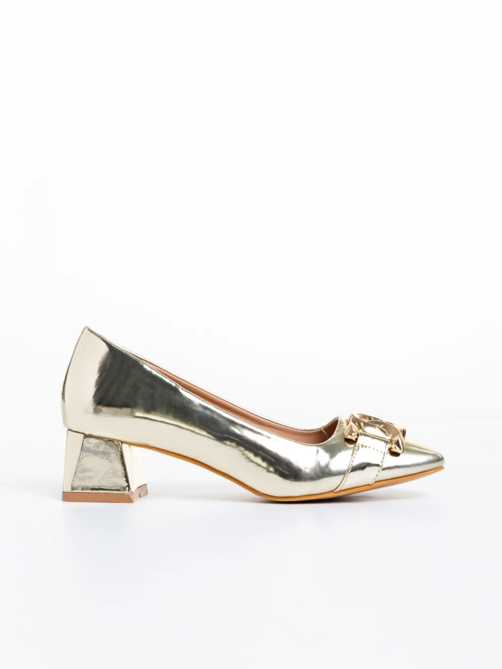 Kerensa arany női cipő sarokkal, lakkozott műbőrből készült Termék leírás