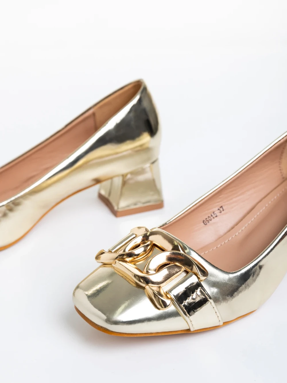 Kerensa arany női cipő sarokkal, lakkozott műbőrből készült