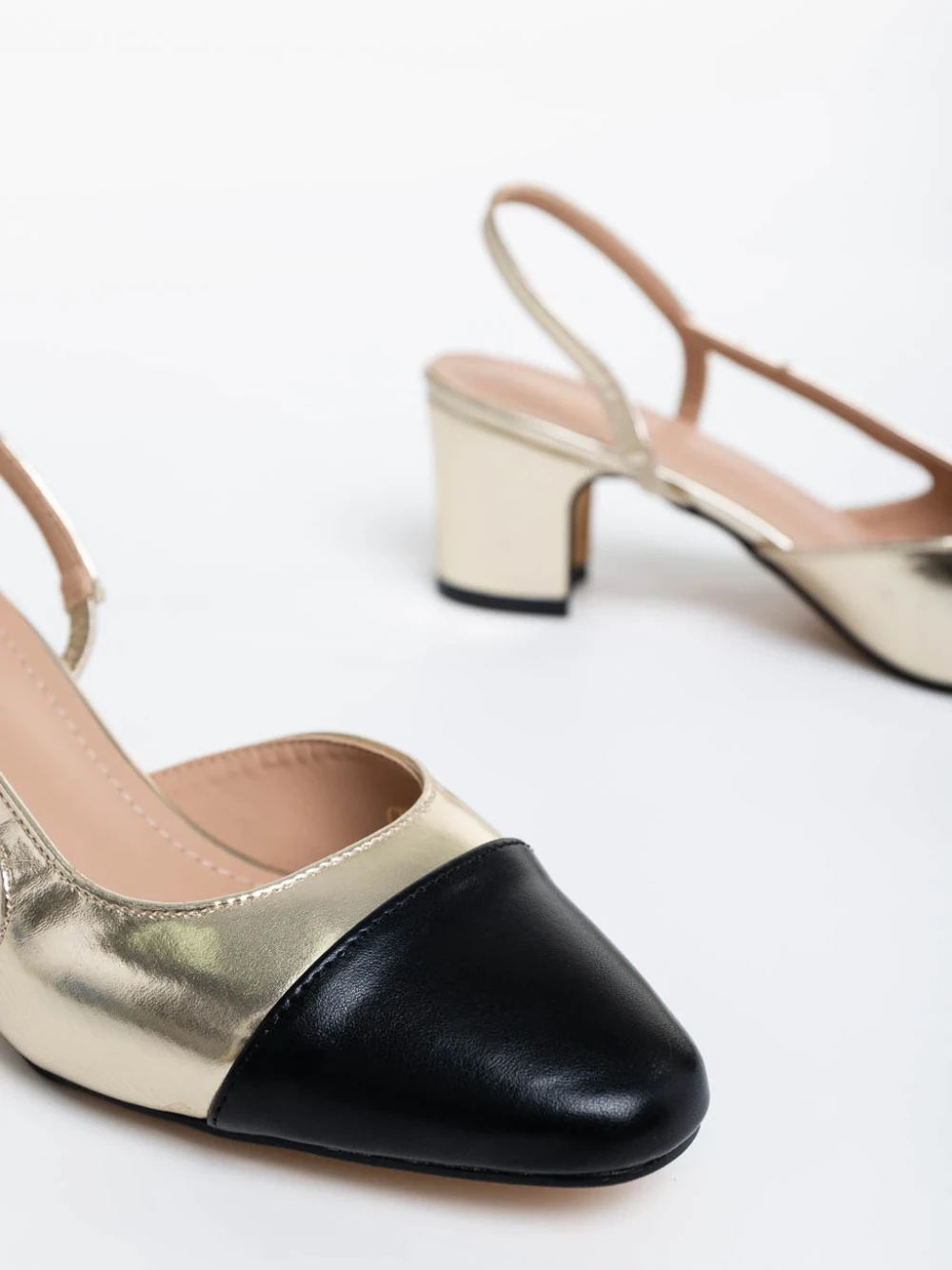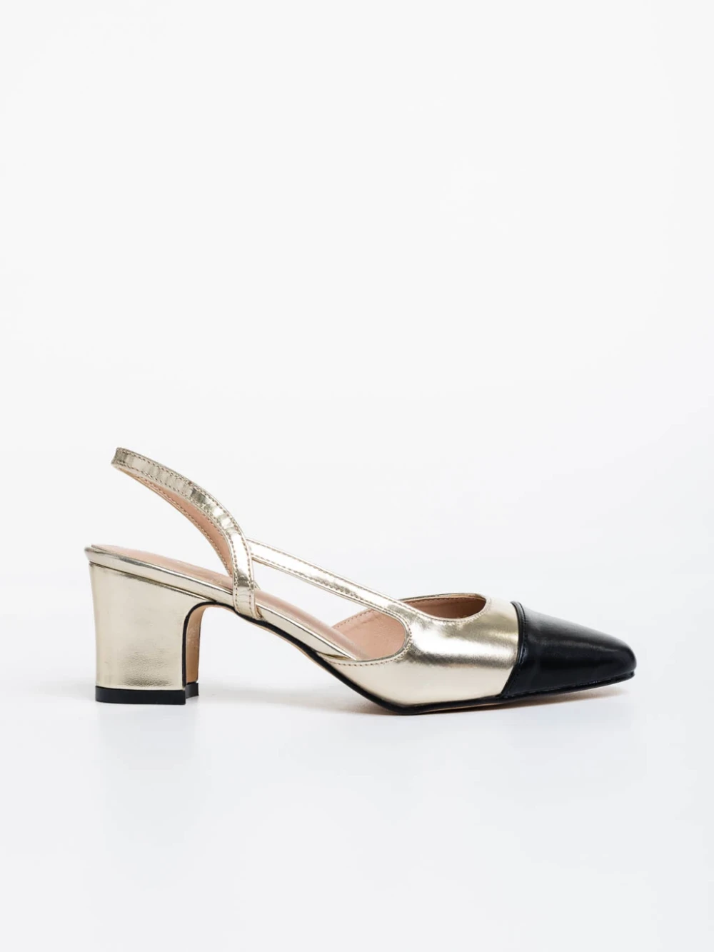 Verna aranyszínű női magassarkú cipő ökológiai bőrből Termék leírás