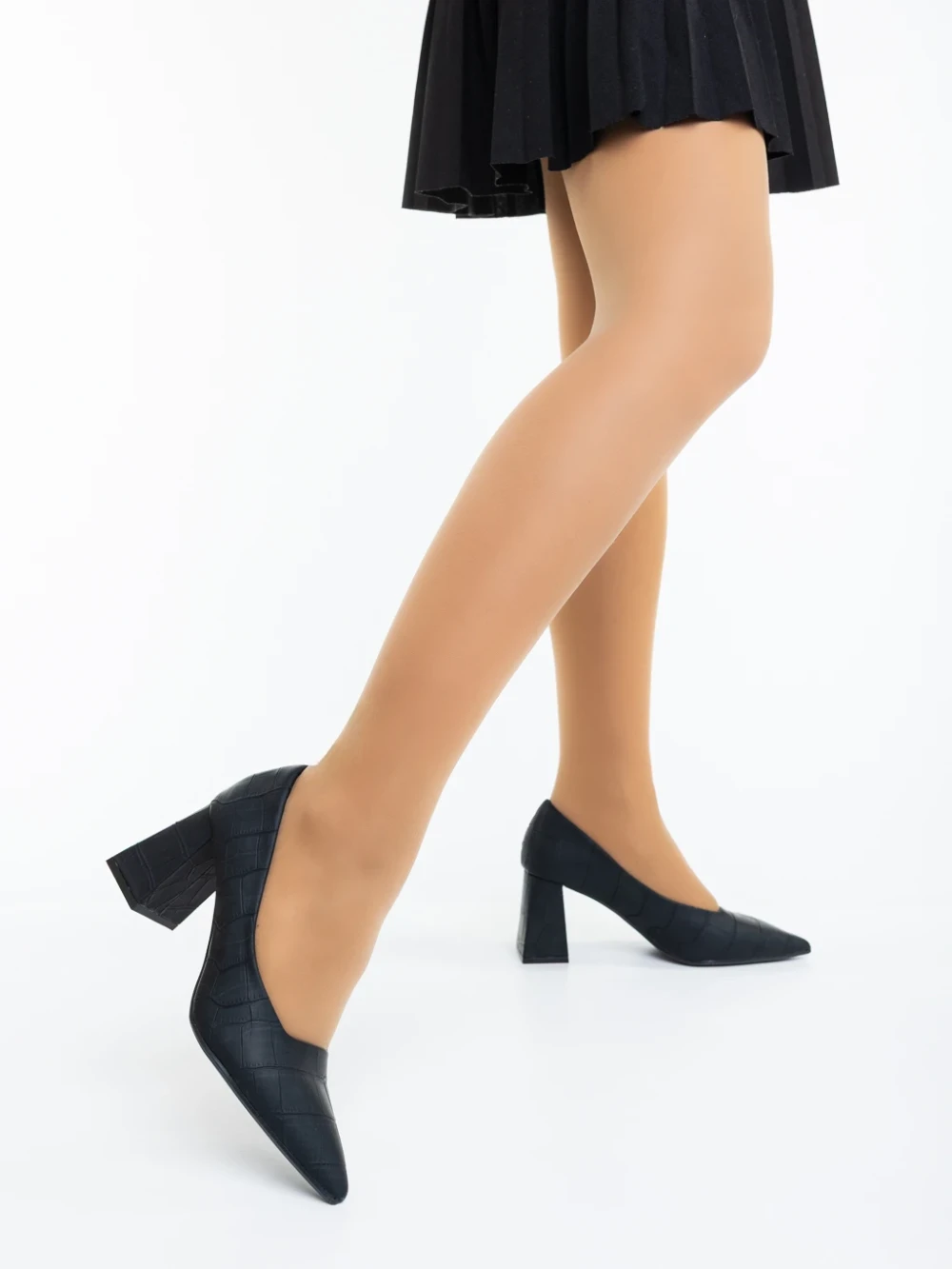 Ludena fekete női magassarkú cipő ökológiai bőrből Termék leírás