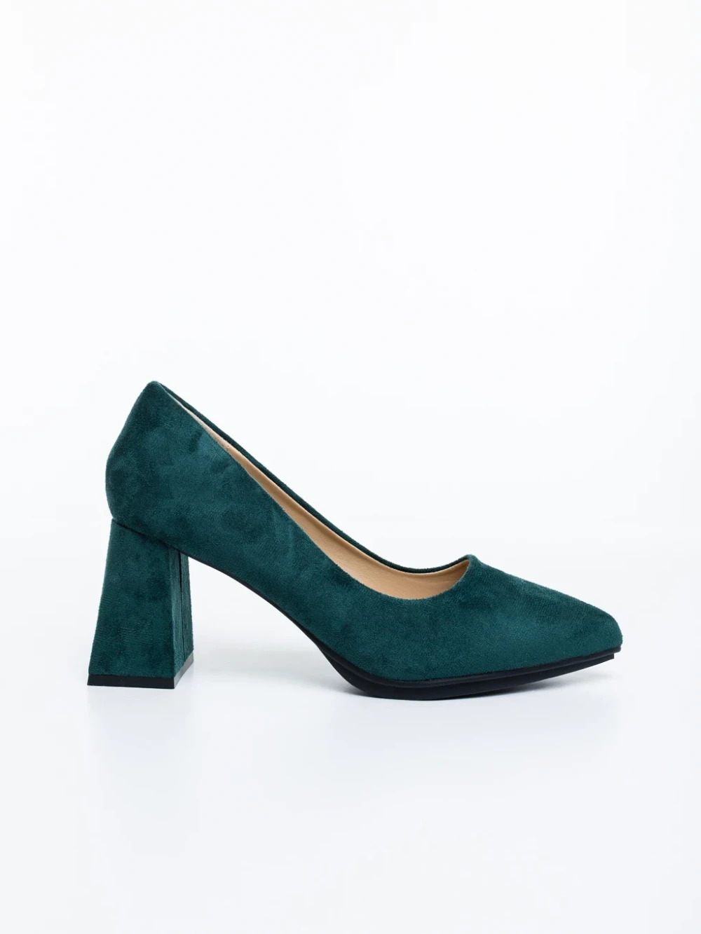 Saida sötét zöld női magassarkú cipő textil anyagból Termék leírás