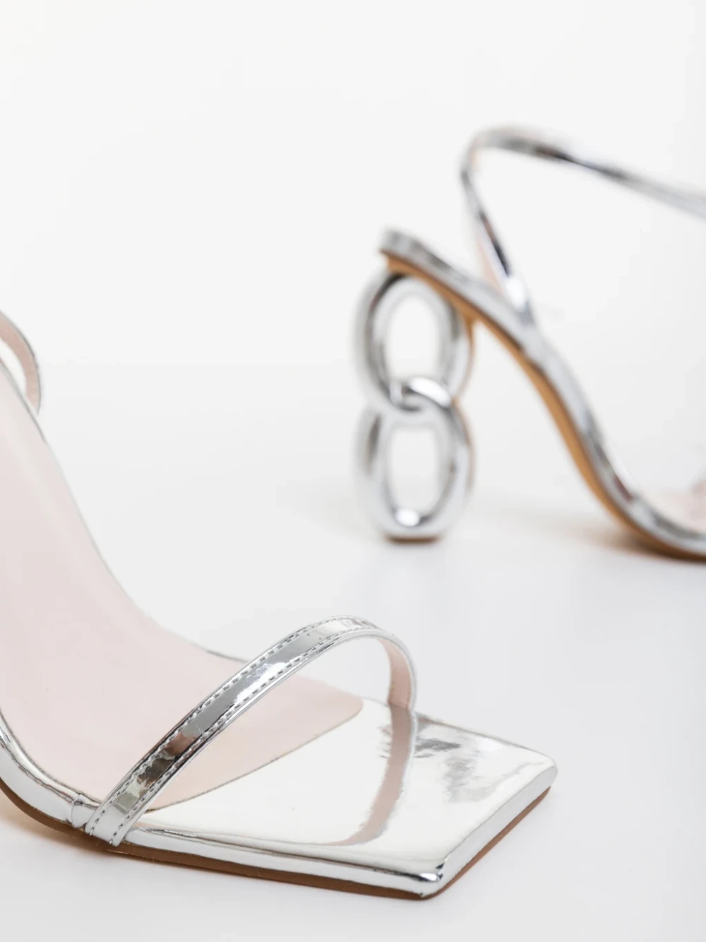 Valeta ezüstszinű női szandál lakkozott ökológiai bőrből